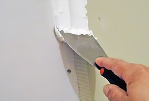 Important! En présence de coutures profondes entre les feuilles de revêtement, les fissures ou les copeaux, la couche de mastic sera assez épaisse. Par conséquent, il est recommandé d'utiliser un filet de peinture (faucille) ou du ruban perforé. Ces précautions empêchent la fissuration du mélange séché dans les zones à problèmes.