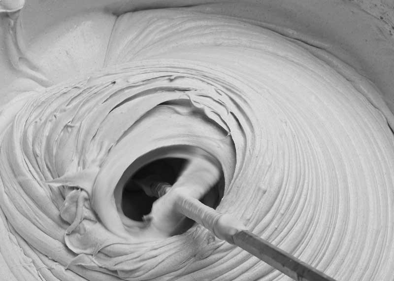 - Le mélange sec est pétri strictement selon les instructions, afin d'éliminer les grumeaux et de donner au mastic une consistance plastique uniforme, il est recommandé de le faire avec un mélangeur de construction ou une perceuse avec une buse spéciale.