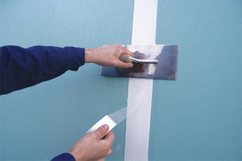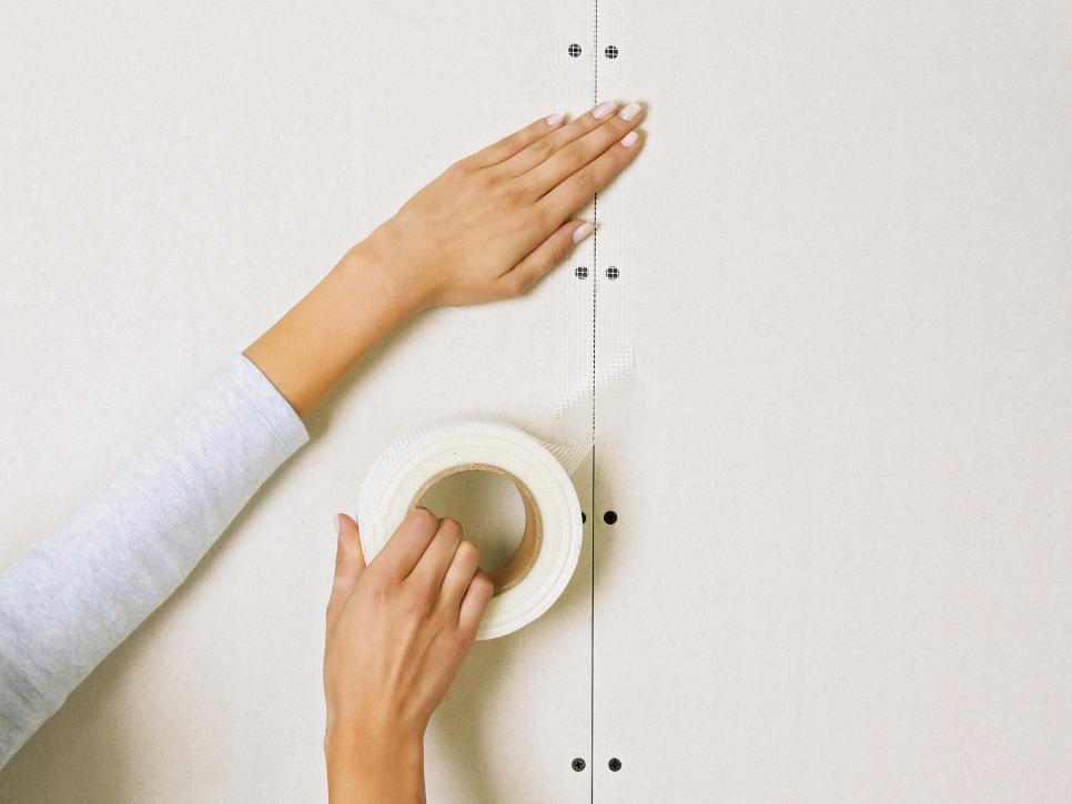Pour donner plus de résistance aux joints des plaques de plâtre, il est nécessaire de coller un ruban de renforcement - une faucille. Il a une base adhésive, il vous suffit donc de dérouler le rouleau le long de la couture et de bien le lisser avec votre main ou votre spatule. Vous pouvez couper le ruban avec un couteau de bureau, ou simplement appuyer sur l'extrémité avec une spatule pointue et tirer.