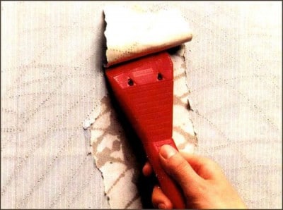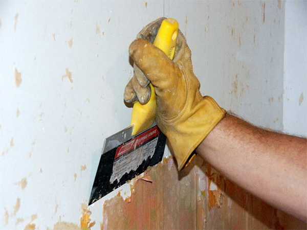 - Les mains ou à l'aide d'une spatule, le papier peint est retiré du mur.