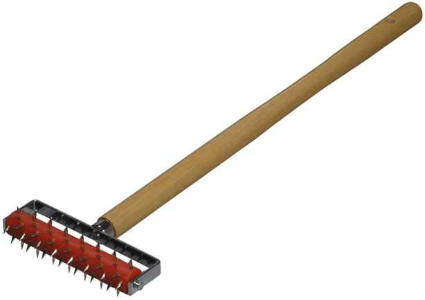 - Pour retirer le matériau dans les endroits difficiles d'accès, il est préférable d'utiliser un rouleau avec des pointes sur une longue poignée, comme sur la photo.