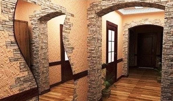 Les papiers peints en pierre à base de gypse peuvent être utilisés pour décorer non seulement des surfaces planes, mais aussi des structures complexes telles que des arcs (voirDécorer une arche avec de la pierre décorative - règles et exigences de base), cheminées, niches, boîtes et plus encore.
