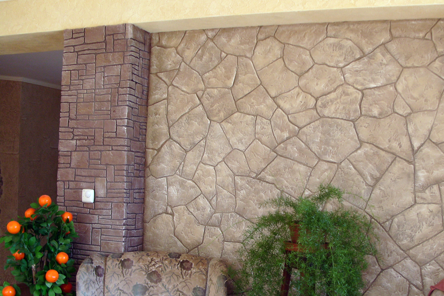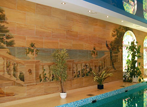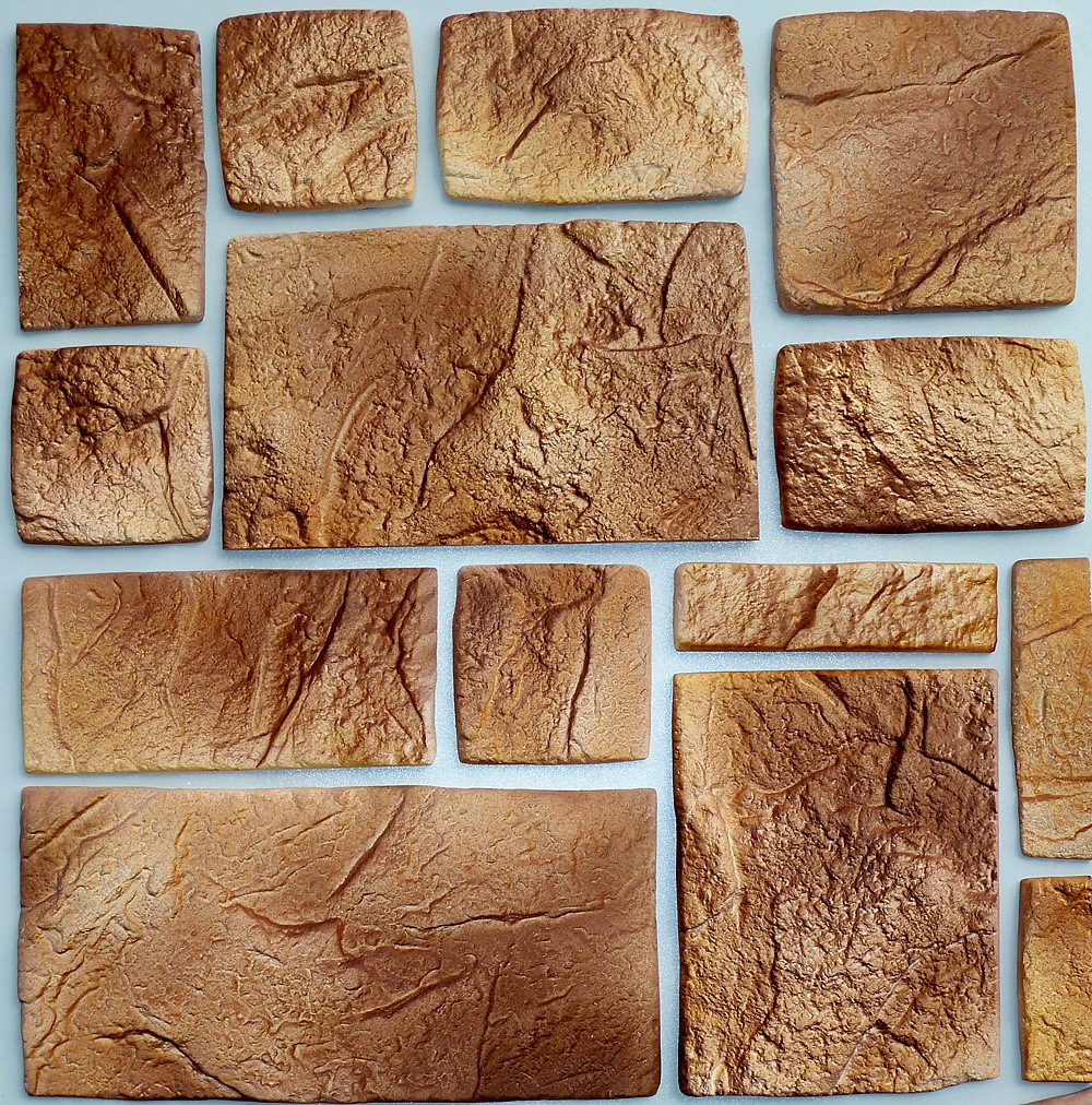 Certains fabricants de papiers peints en pierre, par exemple Ecostone (Ecostone), pratiquent également la peinture manuelle de chaque élément après la coulée. Ainsi, l'artiste rapproche au maximum la pierre artificielle de son homologue naturel, rend chaque tuile unique et individuelle. Mais en même temps, le motif et le style d'ensemble de la collection sont préservés.