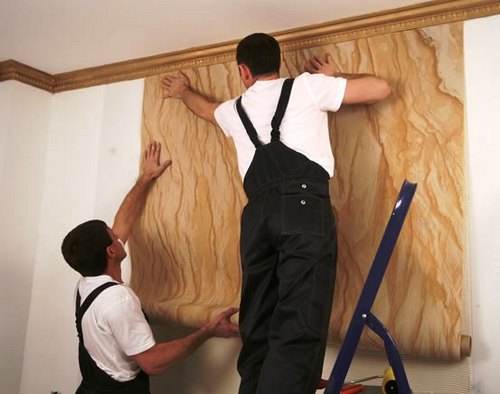 - Mais lors de l'installation du papier peint en pierre, il faut faire attention, car le matériau lui-même est assez fragile.