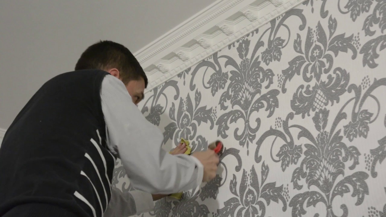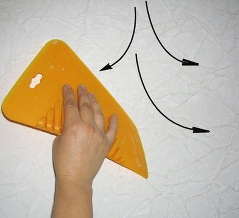 - Lissez le papier peint avec un chiffon sec, une spatule en plastique ou un rouleau;