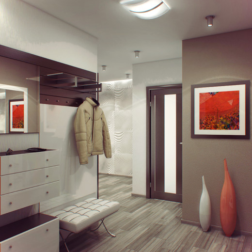 De plus, des papiers peints en perspective peuvent être utilisés (voirPapiers peints dans le couloir: faites votre choix) ou un meuble miroir.