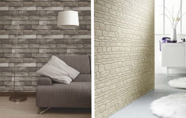 - Les amateurs d'écostyle peuvent profiter de volumineux papier peint en vinyleimitant des matériaux naturels: pierre, bois, brique. Les fonds d'écran doivent être monophoniques.