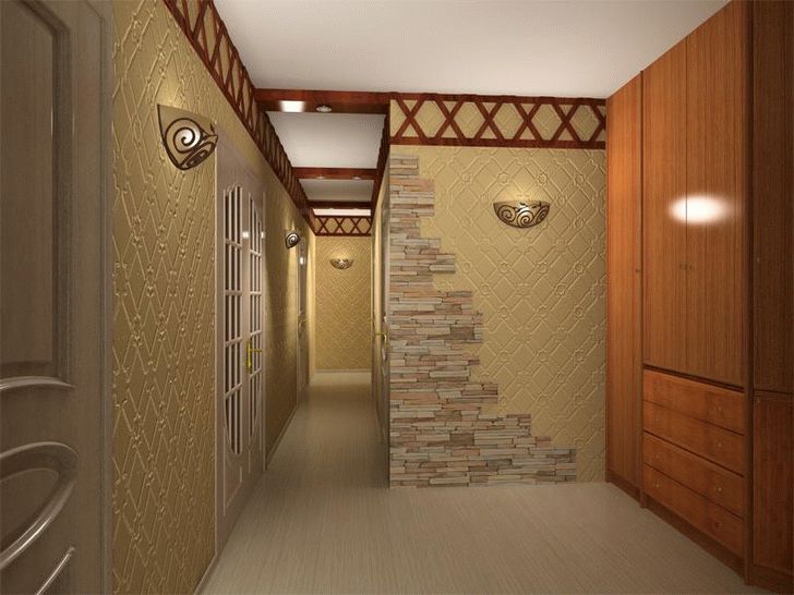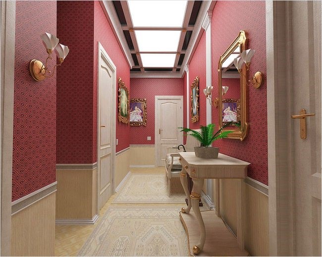 Les murs du couloir peuvent être décorés dans différentes combinaisons de papier peint: