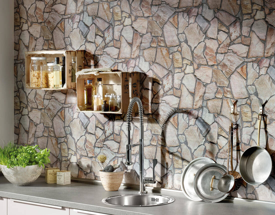 C'est tout autre chose si vous sélectionnez des papiers peints pour la cuisine ou, par exemple, le couloir. Il vaut mieux privilégier un revêtement plus dense et plus rustique. Le vinyle peut facilement faire face à toutes les influences négatives qui sont traditionnellement présentes dans ces pièces, et même en cas de pollution sévère, le lavage de la surface ne sera pas difficile.