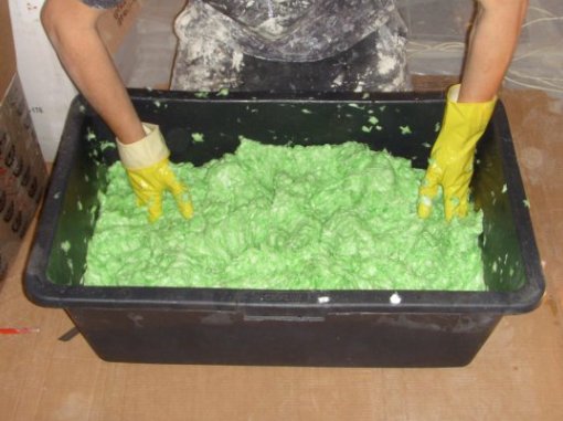 - Le papier peint liquide est soigneusement malaxé à la main, puis laissé pendant 12 heures. Après cela, la solution est remélangée.