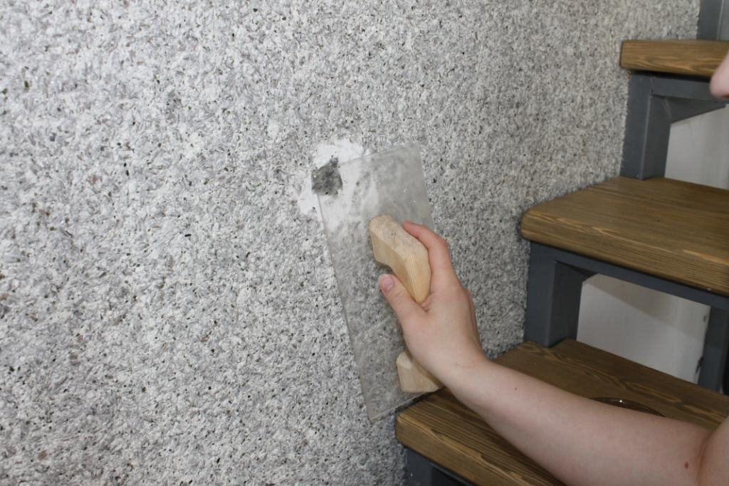 Important! Les instructions pour appliquer du papier peint liquide indiquent que vous ne pouvez mélanger le mélange qu'à la main, et en aucun cas avec un outil rugueux. Vous ne devez pas négliger cette règle, car tout outil dur peut endommager les fibres et le revêtement se révélera déchiré et inhomogène.