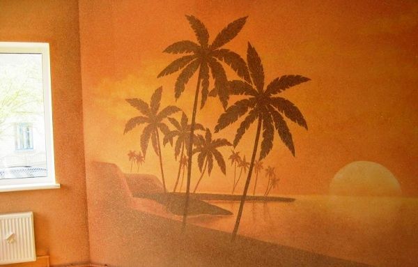 Eh bien, si tout est plus ou moins clair avec la préparation du mélange, il est simplement nécessaire de comprendre les types de papiers peints liquides, surtout si vous prévoyez de créer des dessins à partir de papiers peints liquides, comme, par exemple, montré sur la photo au début de l'article.
