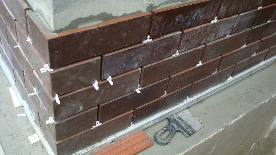 Avant de commencer le parement, il est nécessaire de marquer la surface. Le plus souvent, la maçonnerie est réalisée horizontalement de bas en haut (seuls les carreaux de revêtement carré pour la cheminée sont posés en diagonale).