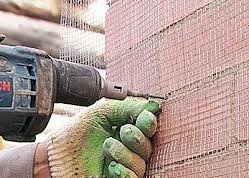 Pour ce faire, utilisez un pigment déposé en position horizontale. N'oubliez pas de vous assurer que la rangée supérieure se chevauche de 4 cm et que les coutures verticales se chevauchent également d'environ 8 cm. - Après cela, vous pouvez commencer à fixer le maillage de plâtre. Pour cela, des attaches spéciales sont utilisées.