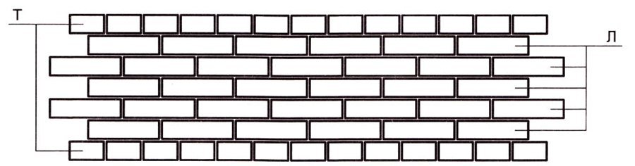 - décalé dans les rangées de cuillères, utilisé pour les murs d'une épaisseur de ½ brique, par exemple, lorsque lors de la décoration du mur fini avec de la brique ou des réparations liées au réaménagement des locaux.