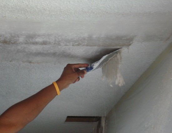 Bien sûr, la qualité d'une telle finition est hors de question - elle tombera déjà en cours de séchage. Par conséquent, le blanchiment doit être gratté avec une spatule, après l'avoir trempé dans de l'eau tiède. Après cela, la surface est séchée et apprêtée comme d'habitude.