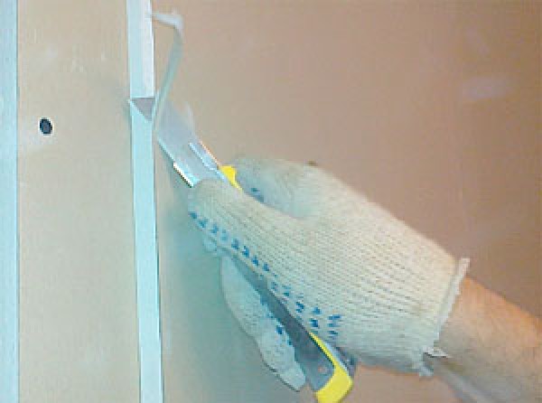 - Si les joints entre les feuilles sont formés par les bords d'usine, rien ne doit encore être fait avec eux. S'il s'agit des joints entre l'extrémité ou les bords coupés, ils doivent être dilatés avant le masticage - coupés avec un couteau à peinture à un angle de 45 degrés.