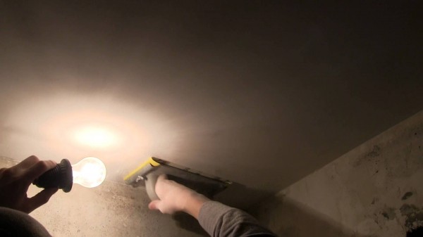 Masticage de cette manière sur toute la surface, laisser sécher le mastic, puis procéder à la finition. Ici, vous aurez besoin d'un projecteur ou d'une lampe de poche lumineuse. En dirigeant séquentiellement son faisceau vers le plafond selon un léger angle, examinez attentivement la surface.