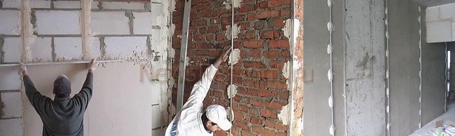 - Après avoir installé les balises, vous pouvez poursuivre le processus de mastic. Pour l'installation de balises, le processus de nivellement des murs est accéléré. Dans ce cas, nous pouvons dire en toute sécurité que le processus de préparation prend beaucoup plus de temps que le processus de mastic.