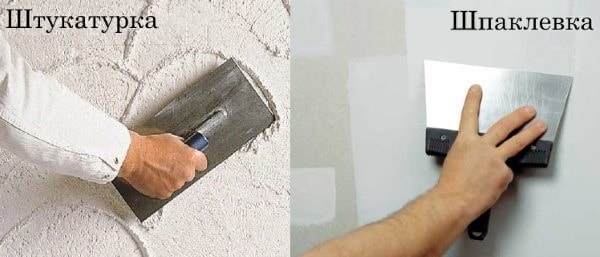 Attention: Mastic ou plâtre, où il est nécessaire de mettre une couche sur un cm, puis du plâtre est appliqué. Si moins, utilisez un mastic.