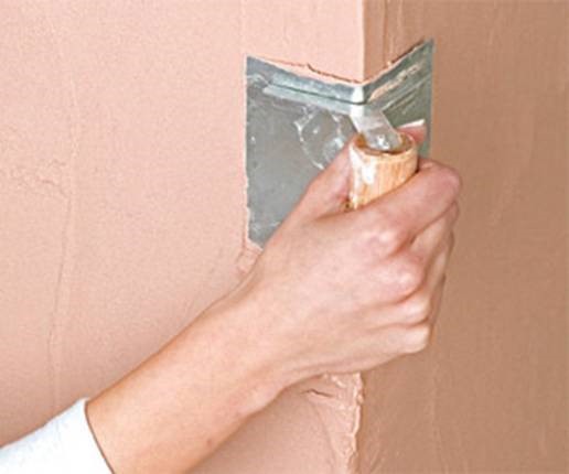 Et après séchage, une «pression» de mastic est extraite du sac en un seul mouvement de bas en haut, qui est immédiatement nivelée avec une spatule angulaire, dont les surfaces de travail reposent sur des parois déjà alignées.