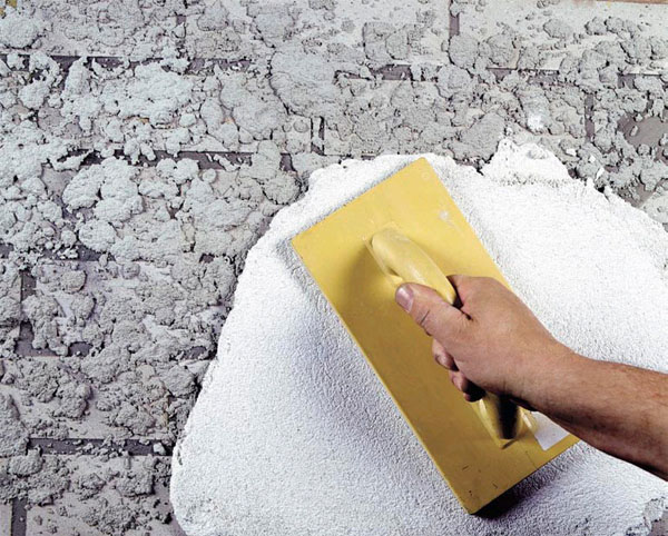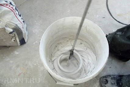 Pour éliminer les différences de plus de 50 mm, le mastic «Rotband» convient. Le mastic «Concrete BX» convient pour les travaux dans des pièces humides et «Concrete KR» ou «Concrete LR» peut être utilisé dans des pièces sèches, car ils sont fabriqués sur une base adhésive.