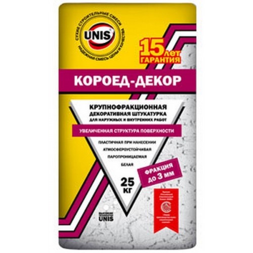 L'apparence du revêtement fini ressemble à sa texture d'écorce de bois, mangée par un scolyte - d'où son nom inhabituel. Cet effet est dû à la présence de particules minérales solides dans le mastic.