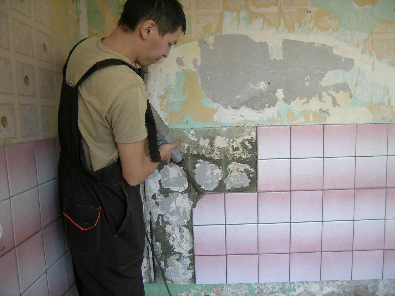 Le plâtre n'est pas appliqué sur l'ancienne finition. Avant d'utiliser le matériau, le carreau est démonté (comme sur la photo ci-dessous), la peinture est enlevée, le badigeon est lavé. Ensuite, les grandes différences sont coupées par un broyeur ou un outil de meulage. La surface est tapotée avec un marteau pour révéler des fragments fragiles et s'en débarrasser.