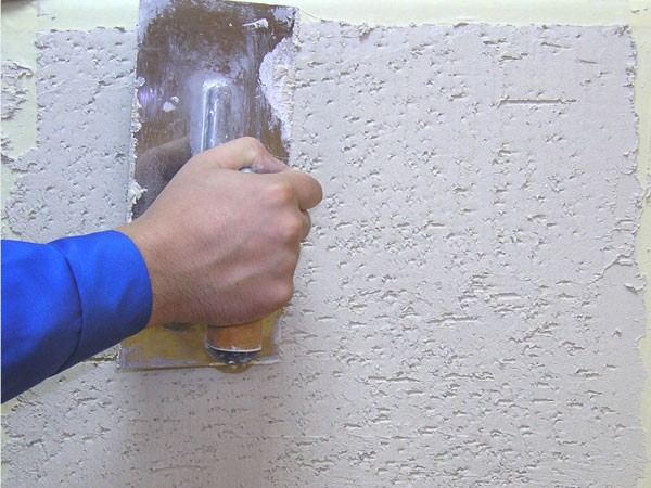 Le mélange est appliqué sur les murs avec une spatule ou une truelle à couche mince et immédiatement nivelé avec une râpe en mouvements directs ou circulaires. Le motif de texture créé en roulant les granules dans l'épaisseur de la solution dépend de la direction de ces mouvements.