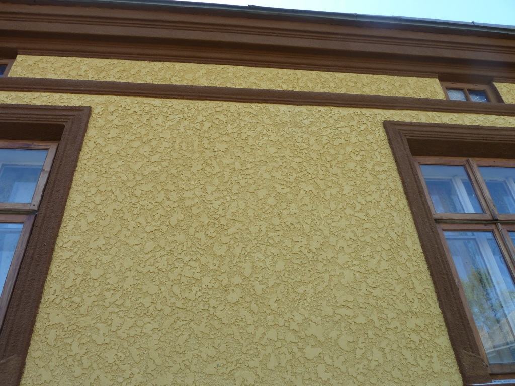 Le plâtre décoratif pour façades, à base de résines acryliques, est appliqué sur du béton lisse ou nivelé avec une base en mortier de chaux-ciment. Ces compositions sont très flexibles, faciles à appliquer et adhèrent parfaitement à la surface, préservent la couleur du revêtement pendant longtemps.