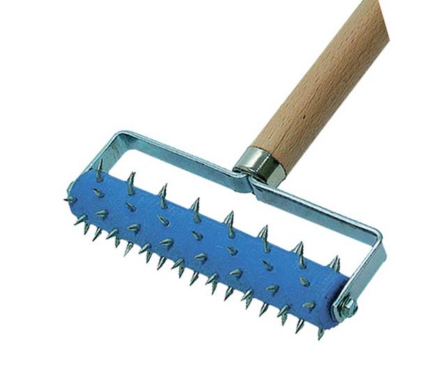 • Traitez la mousse avec un rouleau à aiguilles (comme sur la photo ci-dessous). Cela améliorera son adhérence au plâtre.