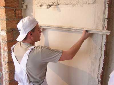 - Lors du plâtrage d'une grande surface, il est assez difficile d'obtenir une surface plane de cette manière. Une fois la solution solidifiée, une balise apparaît sous elle. Pour éliminer ce défaut, vous devez appliquer une couche supplémentaire de colle ou moudre les parties saillantes.