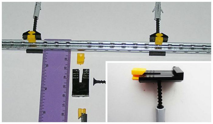 - Après avoir installé les fixations à l'aide de vis autotaraudeuses, elles sont alignées avec un tournevis, les têtes doivent être dans le même plan - c'est très important. Pour plus de certitude, ils ont souvent recours à des astuces et tirent un fil, un cordon ou une ligne le long des diagonales entre les vis autotaraudeuses. La précision est déterminée par l'endroit où les fils se croisent.