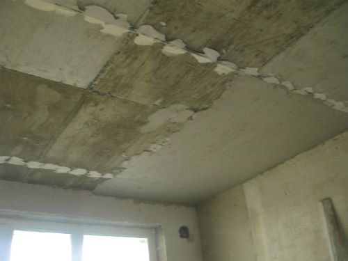 Attention: Dans les cas où des différences sont constatées sur la surface du plafond avec une profondeur ne dépassant pas cinq centimètres, des mélanges secs sont utilisés pour les niveler.