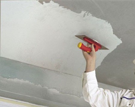Afin de lisser les petites différences sur la surface du plafond, le mastic est utilisé comme méthode la plus efficace dans ce cas. Le plâtre et le mastic diffèrent l'un de l'autre en ce sens (voir Mastic et plâtre: quelle est la différence entre eux), qui contrairement au plâtre, le mastic remplit des fissures beaucoup plus petites, dont la taille ne dépasse pas 1000 micromètres. Compte tenu de ce fait, le mastic est utilisé pour éliminer les petits défauts, il peut être appliqué à la fois sur le bois et sur d'autres surfaces. En utilisant du mastic, vous pouvez même égaliser la zone du plafond.