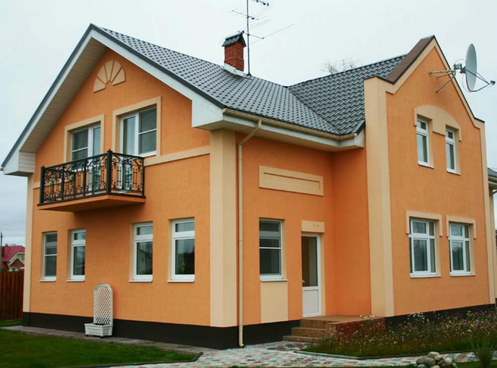 Le plâtre de façade de couleur fait référence aux matériaux utilisés pour décorer les murs extérieurs des bâtiments. Son principal avantage est que ce revêtement vous permet de protéger de manière fiable la structure contre les effets des variations de température et des précipitations et de décorer la surface avec une couche décorative colorée sans peinture supplémentaire.