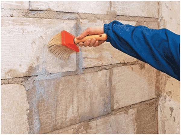 Pour résoudre ce problème, avant de commencer les travaux de finition, une solution liquide de ciment et de sable est appliquée sur le mur: