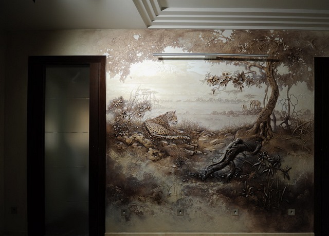 Le plâtre décoratif lui-même a divers effets, grâce à diverses charges dans sa composition, mais également soumis à une décoration supplémentaire. Il peut être peint dans les couleurs les plus étonnantes.