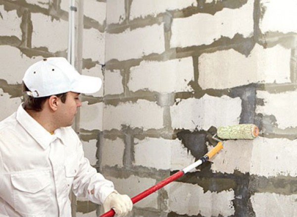 - Les murs ainsi préparés sont apprêtés (voir Murs d'apprêt et tout cela d'ailleurs) Le type et la composition du sol sont choisis en fonction des circonstances. Par exemple, si la base est lâche, un apprêt durcissant à pénétration profonde est nécessaire. Et pour le traitement des murs dans les pièces humides, il doit contenir des additifs antifongiques;