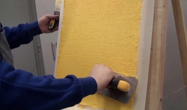 Maintenant, comment fabriquer vous-même du plâtre texturé. Appliquez-le plutôt sur les murs et le coulis avec la texture désirée. Si la fondation est préparée avec une haute qualité, elle ne sera pas difficile à mettre en œuvre.