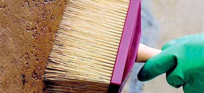 - Après séchage, les murs sont recouverts d'une brosse en plastique dur pour éliminer la poussière et les fragments séchés de la solution.
