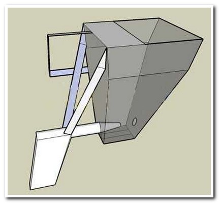 - La buse est réglable de sorte que de celle-ci à la paroi avant ou à la sortie, la distance soit d'environ 20 millimètres. Dans ce cas, la partie inférieure du godet peut être beaucoup plus grande: 50 × 50 millimètres ou 70 × 70 millimètres.