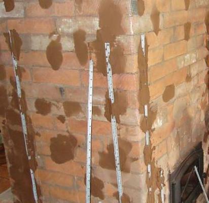 - Pour que le revêtement se révèle lisse et sans différences, avant de plâtrer le poêle à partir d'une brique, vous devez fixer les balises dessus, comme indiqué sur la photo au début de cet article. Ils servent à garantir que l'outil avec lequel le mélange est appliqué ne pousse pas la surface plus que nécessaire.