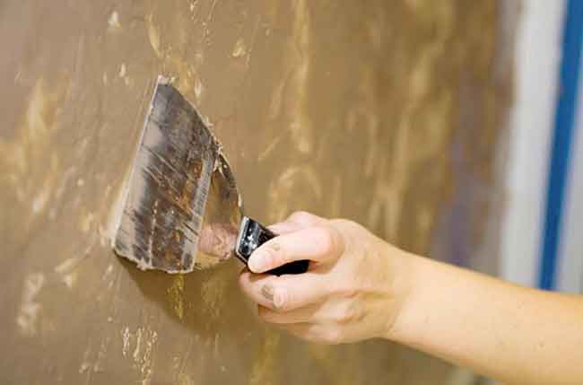 - Maintenant, il est nécessaire de nettoyer le papier peint, le plâtre et les autres revêtements inutiles qui ne tiennent pas bien et, par la suite, conduira éventuellement au départ de la couche de plâtre appliquée.