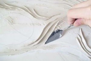 - En plusieurs étapes, des renflements ou des indentations sont créés jusqu'à ce que la taille souhaitée soit obtenue.Une fois le plâtre décoratif complètement sec, les irrégularités sont soigneusement coupées. Le matériau durcit en 9 à 36 heures, ce qui dépend de la méthode d'application de l'image et de la température ambiante.