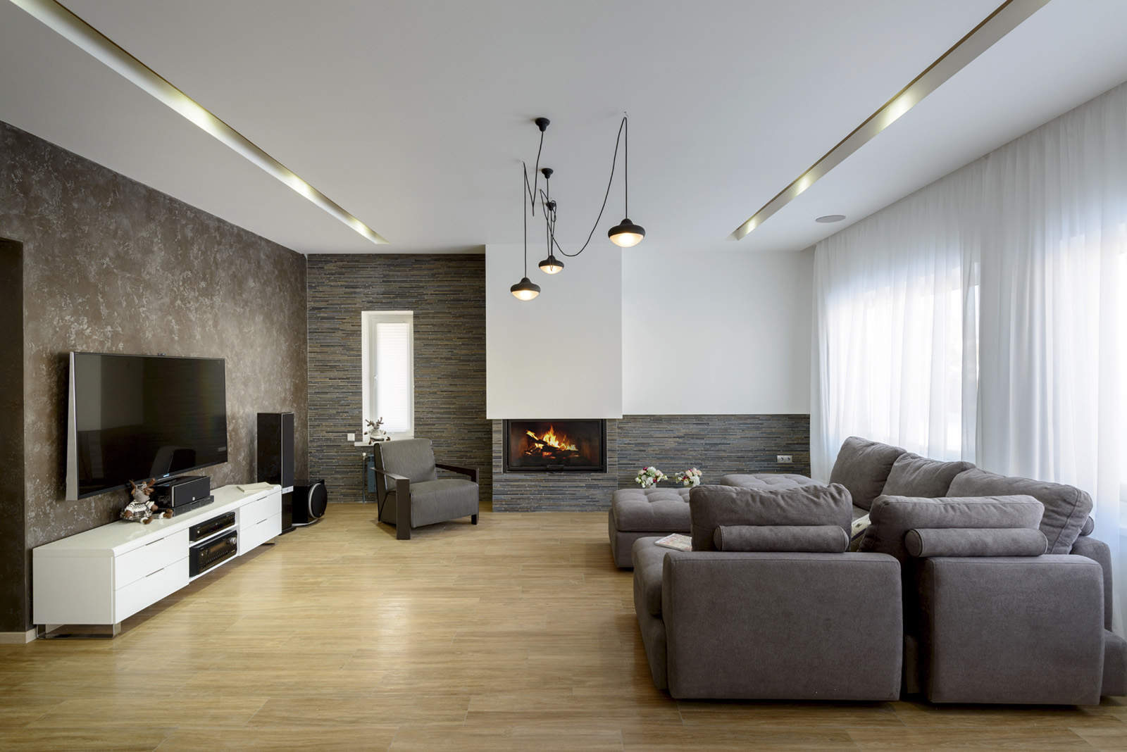 - Les enduits de ciment, en tant que tels, sont rarement utilisés dans les intérieurs - ils utilisent principalement du gypse. Mais à l'aide de plâtre microciment, la conception des murs et des plafonds «sous le béton», si populaire et à la mode aujourd'hui, est réalisée. Notez que cette texture fait partie intégrante des directions architecturales telles que le style industriel de haute technologie, le loft.