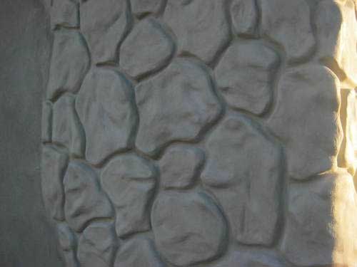 Par exemple, vous pouvez pré-créer un pochoir, dont l'impression laissera un motif de pierre ou de brique à la surface. Le même motif est facile à appliquer avec n'importe quel objet long et mince, ce qui en fait des rainures dans du plâtre frais.