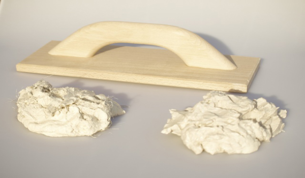 - Après le mélange, la composition résultante est coulée avec une colle à bois à cinq pour cent, dont la quantité dépend de la densité requise du plâtre.
