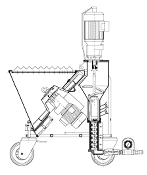 - Il alimente sous pression, à travers un flexible soufflant, du plâtre à la surface.