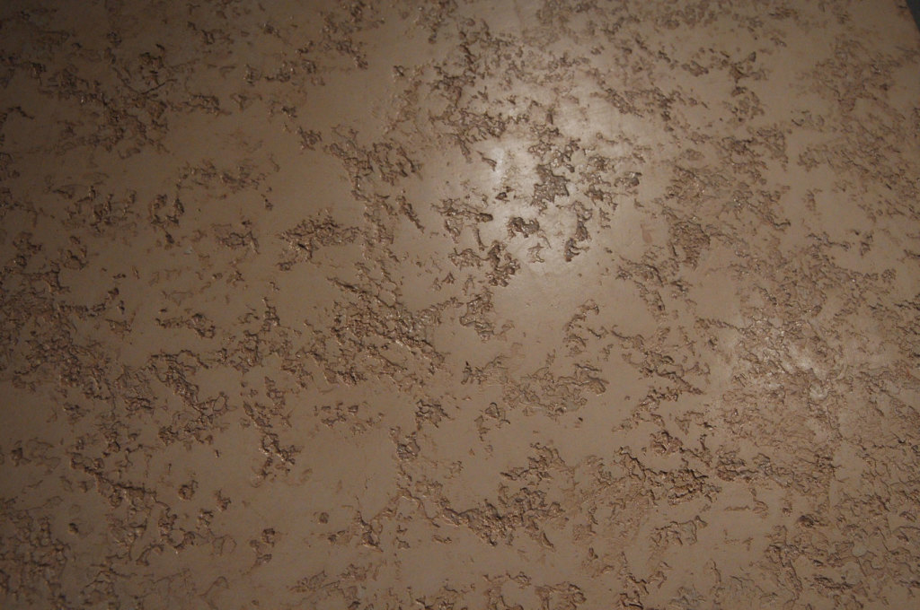 - C'est un travail minutieux - surtout quand cela doit être fait au plafond. Mais c'est du design: moderne moderne, ou loft. Ces travaux sont effectués par des spécialistes hautement qualifiés et payés en conséquence. Quant à la simple imitation du béton, dans ce cas, l'enduit de texture de vos propres mains est assez simple.